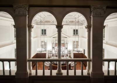 Ed ancora nell’abitazione di un dei personaggi più in vista del nucleo ebraico pisano doveva trovarsi la sinagoga nei primi decenni del’300, quando gli ebrei si trasferirono, passato l’Arno, in uno o più edifici nella cappella di San Lorenzo in Chinseca, grosso modo tra le odierne Via San Martino e Piazza Chiara Gambacorti. L’unica tra le sinagoghe medievali di Pisa che possiamo localizzare con sicurezza è quella che venne posta all’inizio del ‘400 nel grande edificio, sito nell’odierna Via Domenico Cavalca al n: 36, in cui abitava la famiglia di banchieri ebrei da Pisa. Seppur con qualche interruzione, la sinagoga doveva trovarsi in quella sede ancora nel 1570, quando gli ebrei che vivevano nel Granducato di Toscana furono concentrati nei ghetti di Firenze e di Siena. Il provvedimento non comportò tuttavia il totale allontanamento dalle popolazione ebraica da Pisa: nella città tirrenica continuò infatti a dimorare, seppur privo di strutture comunitarie, un piccolo insediamento, composto da italiani e da un numero crescente di levantini. Questa seconda componente divenne fortemente maggioritaria nell’ultimo scorcio del XVI secolo, a seguito della concessione, fra il 1591 e il 1593, da parte del Granduca Ferdinando I di particolari privilegi, le Lettere Patenti meglio conosciute come Livornine, ai mercanti ebrei che volessero trasferirsi a Pisa e, appunto, a Livorno. Fin dal 1591 l’Universitas ebreorum pisana poté riaprire, sulla base delle nuove disposizioni, un luogo di culto pubblico, che trovò in un primo tempo collocazione nel palazzo da Scorno, sull’ ordierno Lungarno Galilei, per essere poi solennemente trasferito, nel settembre del 1595, in un ampio stabile preso in affitto dalla famiglia Serravallini, posto al n.24 dell’attuale Via Palestro, dove ancora oggi ha sede la sinagoga di Pisa.